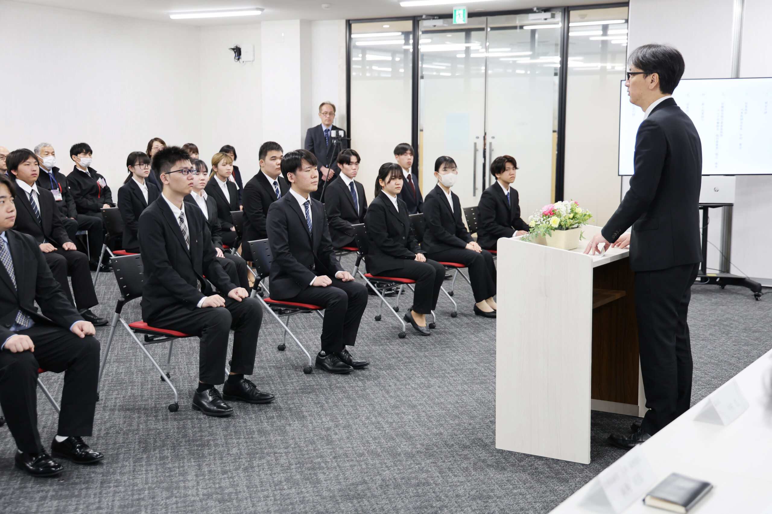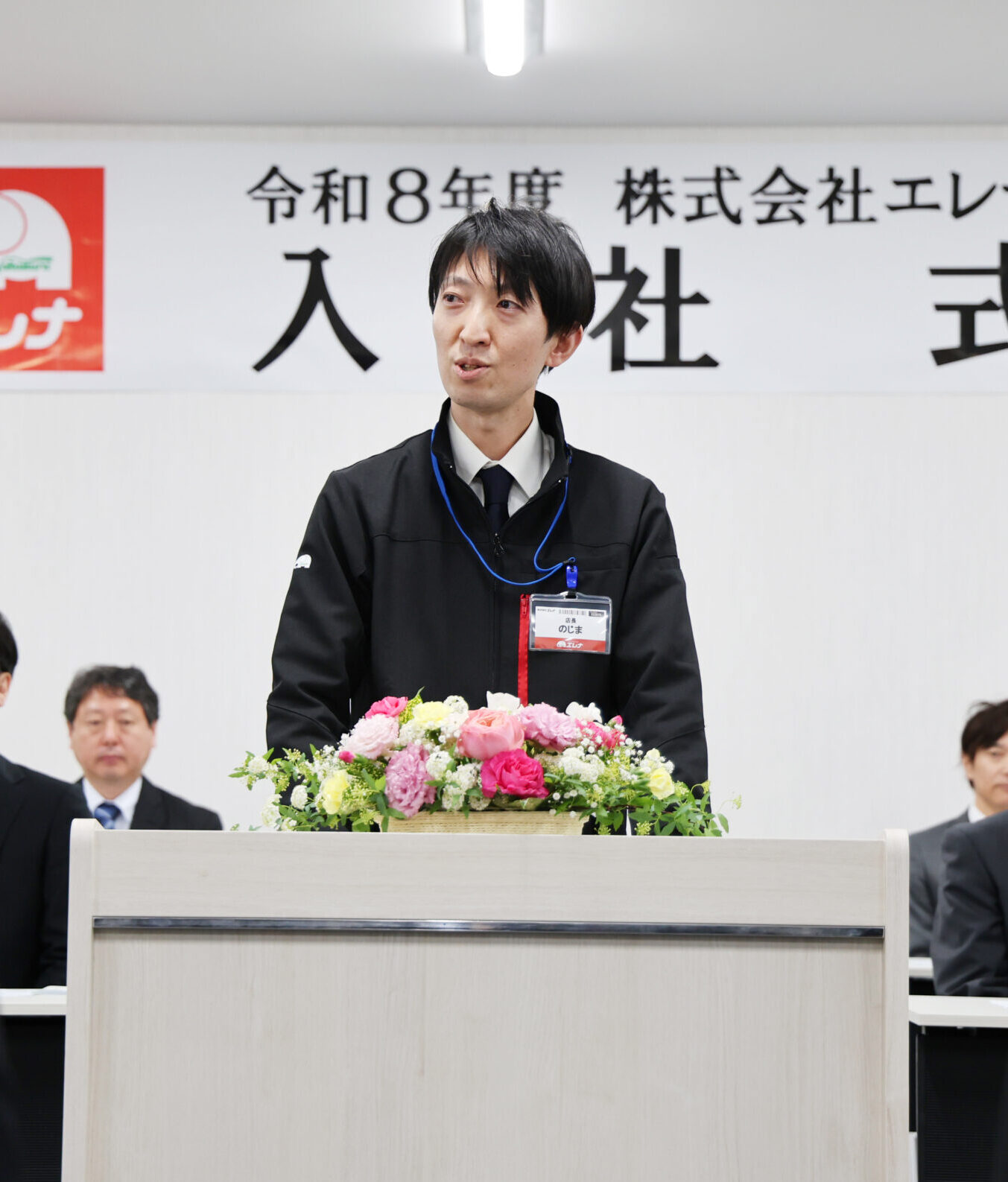 先輩社員として新入社員を全力で支えていく姿勢を示し、一人ひとりが安心して力を発揮し、職場で活躍してくれることへの期待を込めたメッセージでした。